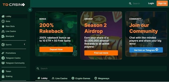 Los recién llegados pueden registrarse hoy en la web de TG.Casino para aprovechar el bono de bienvenida del 200% de rakeback y 50 giros gratis sin requisitos de apuesta.