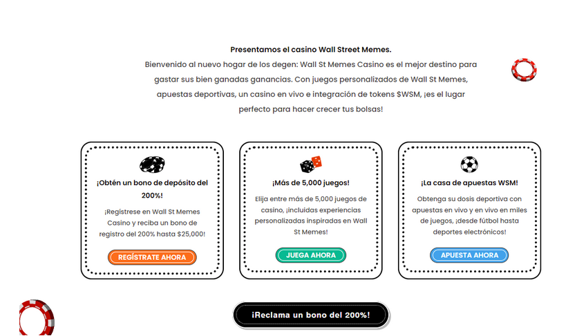 Siguiendo la línea de otras criptomonedas asociadas a plataformas de casino, Wall Street Memes traerá a su casino nuevos videojuegos inspirados en el mundo de los memes. También habrá juegos de casino tradicionales, y más de 5.000 juegos y mesas y apuestas deportivas en vivo. WSM Casino, al estar construido de forma nativa en Telegram, se puede usar accediendo a esta aplicación.