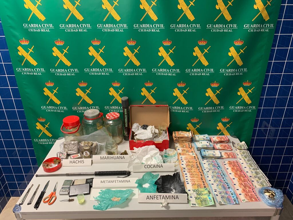 La Guardia Civil ha detenido a una persona como presunta autora de un delito contra la salud pública por tráfico de drogas en la localidad de Tomelloso, incautando diversos tipos de drogas, asà como efectos relacionados con la preparación, dosificación y venta de estas sustancias. También se aprehendieron más de 25.000 euros en efectivo.