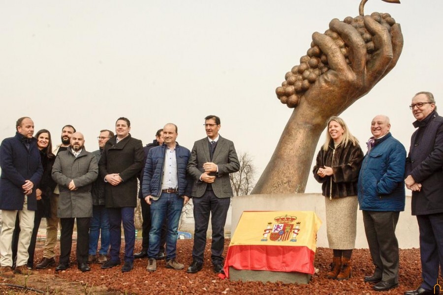"Reconocemos en esta escultura de dónde venimos y lo que somos y reconocer nuestros orígenes supone reconocer nuestra identidad reivindicando el paisaje y el paisanaje", ha afirmado Caballero, que ha reconocido a Tomelloso como epicentro del sector vitivinícola de la provincia y de la región "en pleno mar de viñedos".