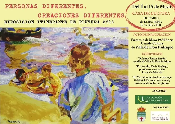 Con esta muestra itinerante de esta entidad se inaugura una nueva etapa de Pintura al Oleo que forma parte de una colección de una treintena de cuadros realizados por personas con enfermedad mental que demuestran que la enfermedad no es un obstáculo para el desarrollo de la creatividad artística. La exposición, antes de llegar a La Villa de don Fadrique, ha estado en Campo de Criptana, Alcázar de San Juan, Villafranca de los Caballeros y El Toboso.