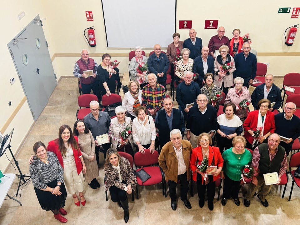 Más de veinte matrimonios, que en este 2023 celebran su 50º aniversario de boda, participaron el viernes en un emotivo encuentro plagado de recuerdos que se celebró en el salón de actos del Centro de Día de Villacañas.