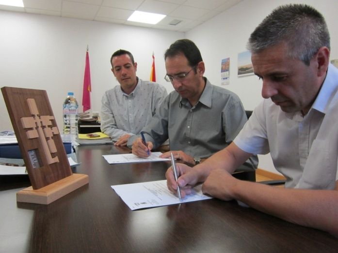 El alcalde, Santiago García Aranda, y el presidente del Villacañas Fútbol Sala, Luis Alfonso Gómez, han firmado el convenio de colaboración por el que el consistorio villacañero colabora destinando los fondos necesarios para el mantenimiento del club villacañero en el desarrollo de su actividad a lo largo de la temporada.