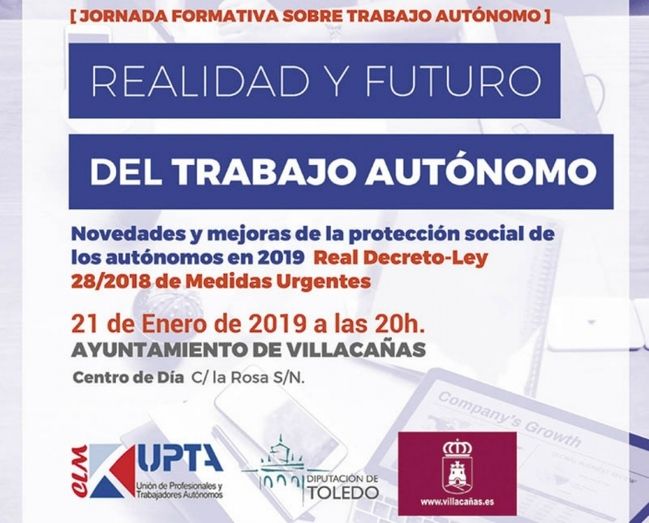 Villacañas va a acoger, organizada por el Ayuntamiento y la Diputación, la primera jornada informativa que la Unión de Profesionales y Trabajadores Autónomos, UPTA Castilla-La Mancha, va a desarrollar en la provincia sobre las novedades para los trabajadores autónomos. La cita es el próximo 21 de enero a las 20 h. en el salón de actos del Centro de Día.