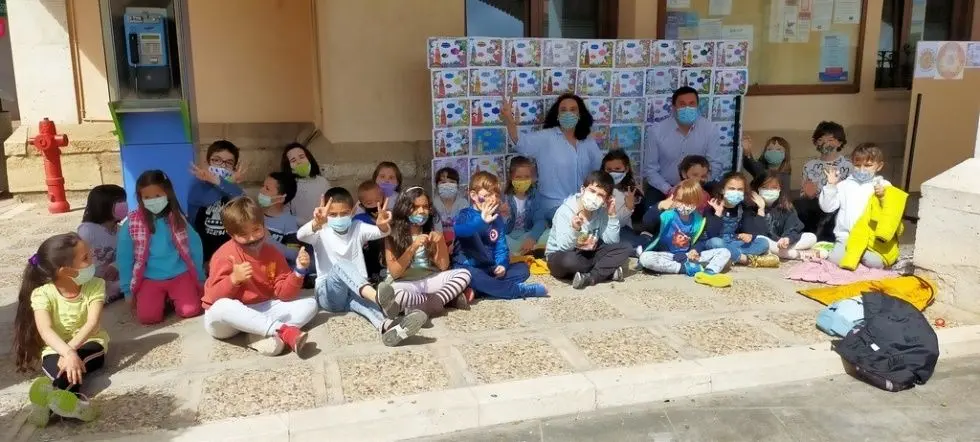 Un grupo de alumnos del CEIP Santa Bárbara han estado esta mañana en la plaza para colgar sus mandalas, cantar el himno a Villacañas y el cumpleaños feliz. Junto a su profesora Rosa Mª Torres, han recibido el saludo del alcalde, Jaime Martínez, que les ha invitado a salir al balcón como hacen las Reinas de las Fiestas en la Feria, los lanzadores del Chupinazo, los Reyes Magos... en los grandes momentos de las fiestas locales.