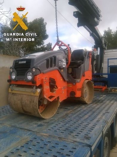 La Guardia Civil descubrió, dentro de un furgón, dos rodillos compactadores y otro que ya tenían preparado para ser desmontado. Los guardias civiles verificaron que estas tres máquinas, con un valor aproximado de 65.000 €, habían sido sustraídas los días 4, 9 y 10 abril en tres obras de construcción que se estaban realizando en las localidades de Villaviciosa de Odón y Alcobendas.