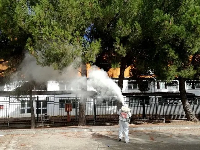 El Ayuntamiento de Villacañas ha realizado estos días la campaña anual de tratamiento contra la procesionaria del pino, una plaga que afecta a las coníferas, mediante la fumigación de las copas de estos árboles con un producto fitosanitario específico.