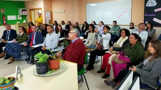Las intervenciones las ha iniciado la directora del IES, Carmen Lara, y por parte del centro han intervenido también la coordinadora del Aula, Alicia Fulgencio, que ha explicado el funcionamiento y la nueva metodología que se utiliza en la misma, y el secretario, Restituto Juan Muñoz.