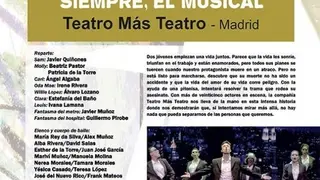 La 44ª edición del Festival de Teatro Aficionado de Villacañas se presenta al público este sábado con un musical inspirado en el argumento de la película Ghost. Será a las 22 h. en el Teatro Municipal Miguel de Cervantes cuando el grupo madrileño Teatro Más Teatro ponga en escena “Siempre. El musical”, una romántica historia de amor más allá de la muerte.