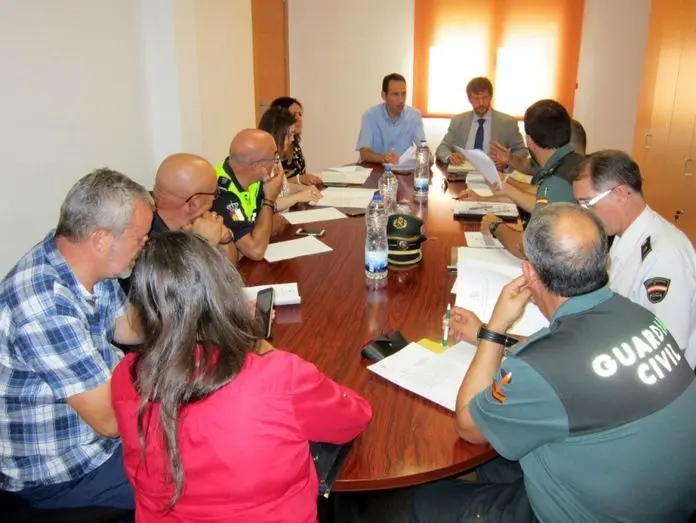 El alcalde de Villacañas, Santiago García Aranda, y el subdelegado del Gobierno en Toledo, Fernando Sanz, han copresidido la Junta Local de Seguridad de este municipio, celebrada esta mañana en el Ayuntamiento. Durante la reunión se han abordado cuestiones de coordinación y cooperación entre los Cuerpos y Fuerzas de Seguridad del Estado y de la Policía Local, con motivo de las fiestas que se celebrarán entre los próximos días 4 y 8 de agosto; pero también se ha analizado la situación de inseguridad que denuncian los agricultores ante los últimos robos y daños sus explotaciones. A la reunión también han asistido representantes de la Guardia Civil, tanto de la zona como del municipio; de la Policía Local; y de la Agrupación de Voluntarios de Protección Civil. Además se han sumado un representante del servicio de Protección Ciudadana de la Delegación de la Junta de Comunidades en Toledo, y la concejala de Seguridad, Rocío Simón.