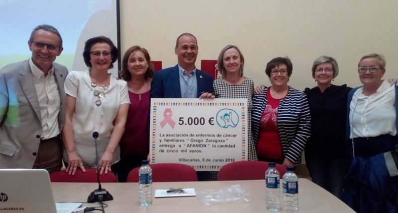 La Asociación de Ayuda a Enfermos de Cáncer “Grego Zaragoza” ha clausurado el curso con un acto en el que participó la asociación de la ONG Afanion, que se dedica a atender las necesidades de los niños y adolescentes con cáncer, así como de sus familias, durante el tiempo en que dura la enfermedad. Al finalizar el acto, la asociación villacañera hizo entrega al presidente regional de Afanion, Vidal Quiralte, de un donativo de 5.000 €, recaudados durante el año en alguna de las actividades que organiza “Grego Zaragoza” en Villacañas.