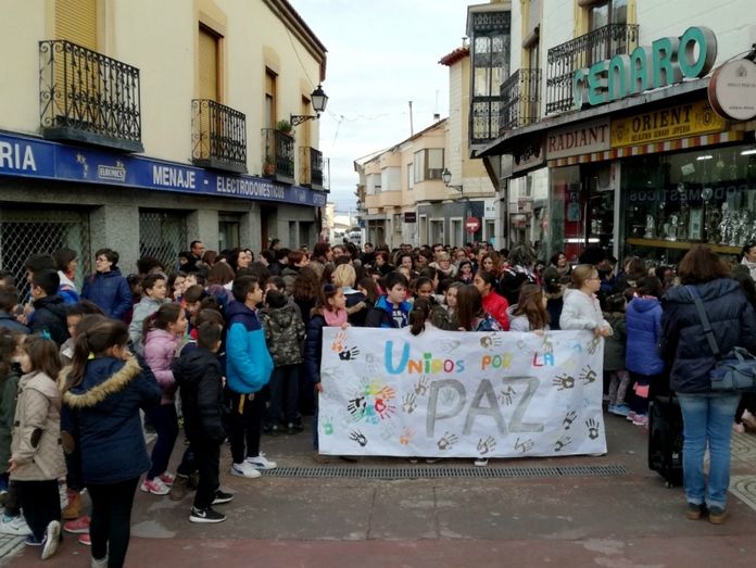 Ya en la plaza, desde la Plataforma por la Paz se leyó el manifiesto elaborado para la ocasión, en el que se aboga por una educación para la paz en un mundo que a diario da muestras de conflictos de todo tipo (armados, violencia de género, acoso escolar, xenofobia, etc.) Una apuesta por la paz como derecho, con mención a los refugiados, al cambio climático, el desigual reparto de la riqueza, los fanatismos… y todo ello desde una educación para la paz que eduque a los escolares en valores como la tolerancia, la solidaridad, la justicia, el respeto o la cooperación.