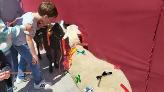 Durante la mañana se pasearon también los dos corderos engalanados que la Cofradía rifará el próximo 2 de mayo, una vez finalizada la fiesta. Una tradición, la de los corderos engalanados, que atrae especialmente a los más pequeños, que disfrutan con estos animales, en lo que supone uno de los muchos momentos curiosos del ciclo festivo, que culminará el 1º de mayo con los vistosos actos religiosos y populares que se celebran. Antes, por la mañana, los Danzantes visitaron a los mayores de las residencias.