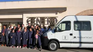 Un vehículo de 9 plazas más una plaza más adaptada para silla de ruedas que esta mañana se ha presentado en el Centro y que ha sido adquirido gracias a la colaboración de la Obra Social “la Caixa”, que ha aportado una importante ayuda para su adquisición.