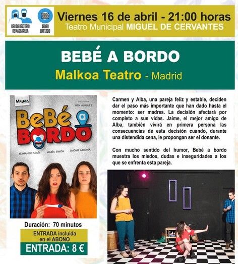 El 46º Festival de Teatro Aficionado de Villacañas continúa este viernes con la segunda función del programa. Si el certamen se abrió con un drama de Lorca, hoy le toca el turno a la comedia, con la puesta en escena de “Bebé a bordo” a cargo de la compañía madrileña Malkoa Teatro.
