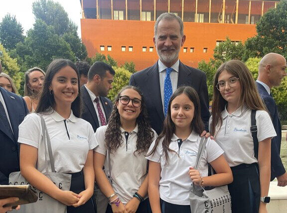 Después de la Gala nuestras 4 representantes tuvieron la oportunidad de hablar con su Majestad el Rey. Su Majestad el Rey Felipe VI se mostró muy cariñoso y atento con las cuatro estudiantes del colegio, comentando a su profesor: “Estarás orgulloso de ellas”, a lo cual respondió el profesor: “Por supuesto que sí Majestad, son un orgullo y un ejemplo para todos”.