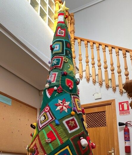 Árbol navideño de punto en Villafranca de los Caballeros