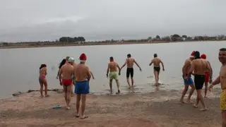 Pocos bañistas, entre ellos el alcalde del municipio, Julián Bolaños, pero muchos vecinos acompañando en la actividad, que también han podido disfrutar del caldo que ha preparado la Asociación para reconfortar a los bañistas tras este primer chapuzón del año 2023.