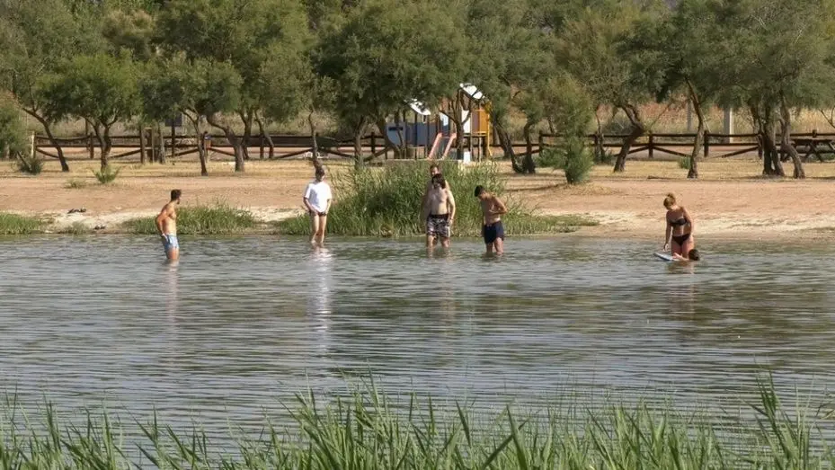 Un baño que está vigilado también, en todo momento, por socorristas; que recorren en lancha la laguna por si surgiera algún percance.
