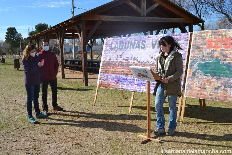 La Asociación Lagunas Vivas de Villafranca ha presentado esta mañana los dos murales que ha compuesto con las 1.320 fotos de las lagunas y humedales manchegos que ha recopilado con su campaña "SOS Lagunas", imágenes curiosas de vecinos y gentes disfrutando con el agua, escenas familiares, anécdotas gráficas y estampas de varias décadas para llamar la atención de administraciones y ciudadanos y exigir medidas eficaces que pongan fin a la complicada situación que atraviesan estas lagunas, convertidas hoy en secarral.