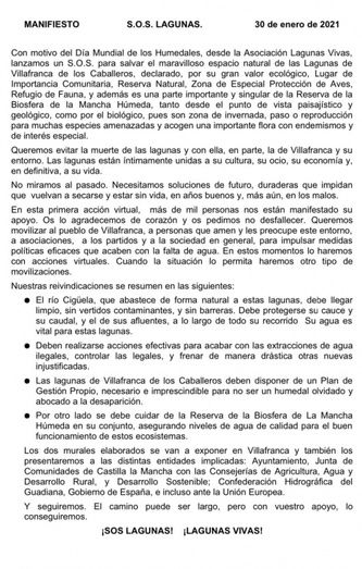 Helena Oliver, miembro también de Lagunas Vivas de Villafranca, ha sido la encargada de dar lectura al manifiesto reivindicativo que reproducimos a continuación.