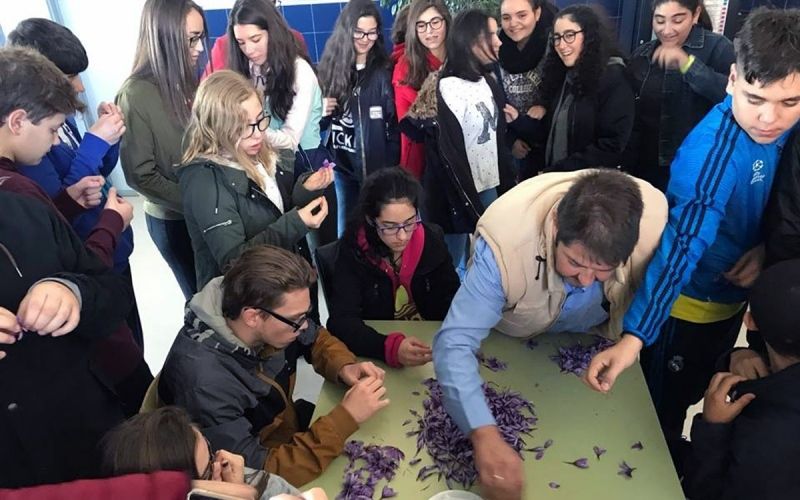 El “azafrán en la escuela” ha sido otra de las actividades que se han programado con charlas y talleres en Infantil, concurso de monda en Primaria y visita de los alumnos de 3º de Secundaria del IES “La Falcata” a los azafranales cercanos al instituto, donde también se ofrecía una charla sobre el cultivo así como el proceso de monda en el centro.