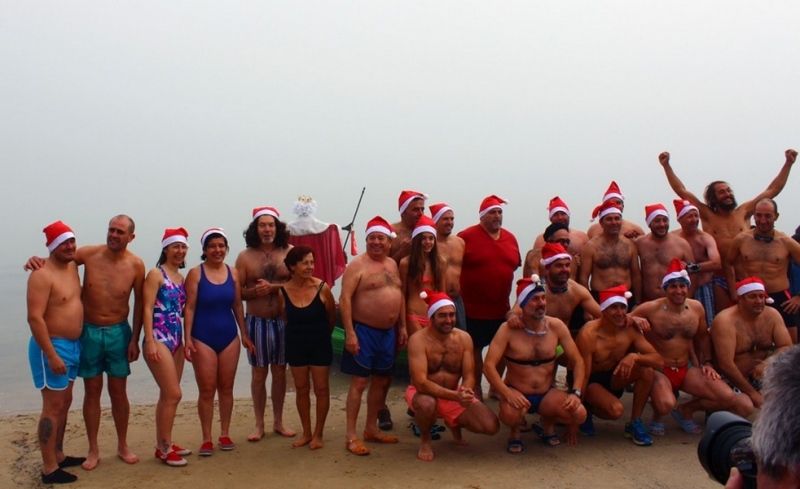 Bolaños, que este año no pensaba participar en el baño, al final se decidió y acompañó al grupo en el chapuzón.