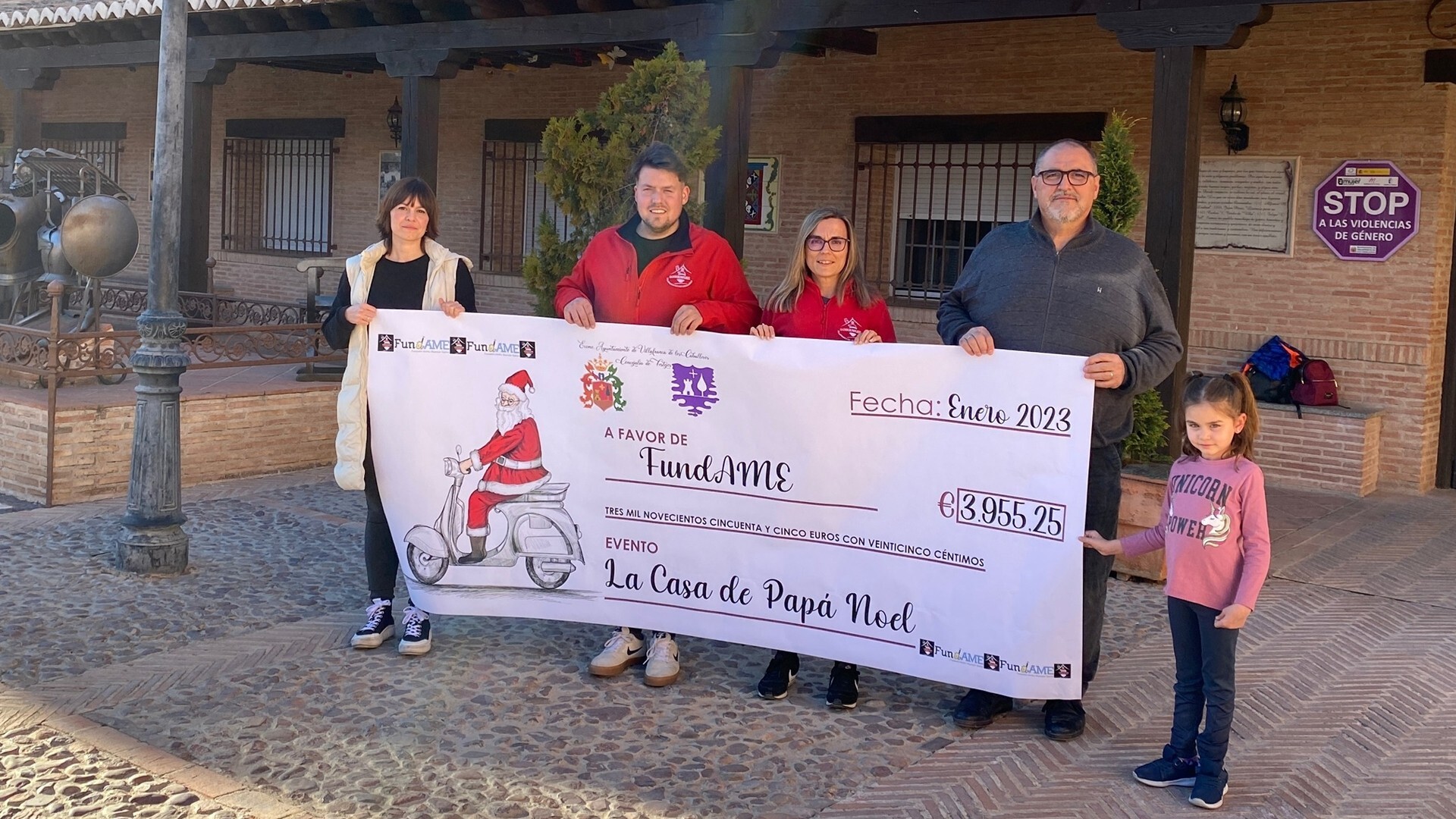 La cantidad que se ha entregado a Fundame, la Fundación de Atrofia Muscular Espinal, es el 50% obtenido de la recaudación de las visitas a la Casa de Papá Noel la pasada Navidad, más los donativos realizados por visitantes.