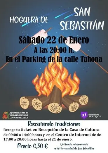 El Ayuntamiento de Villafranca de los Caballeros ha decidido celebrar en 2022 la tradicional hoguera de San Sebastián, manteniendo siempre las medidas de seguridad sanitarias. Será el próximo sábado, 22 de enero, a partir de las 20:00 horas en la calle Tahona