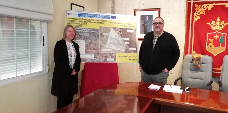 El alcalde de Villafranca de los Caballeros, Julián bolaños y la directora general de Acuaes (sociedad mercantil estatal Aguas de las Cuencas de España), Rosa Cobo, del Ministerio de Transición Ecológica, han firmado esta mañana un convenio para la ejecución de las obras de la nueva estación depuradora de aguas residuales. Obras que, tal y como han explicado, supone una mejora significativa en la calidad de los vertidos que el municipio de Villafranca deposita en el río Amarguillo, y que llegan al parque nacional de las Tablas de Daimiel a través del río Gigüela (el Amarguillo es afluente del Gigüela).