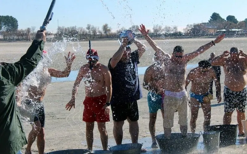 Un año más un grupo de valientes desafiaba al frío este pasado domingo, 29 de diciembre de 2019, participando en el Baño Invernal en la Laguna Grande de Villafranca de los Caballeros. En esta ocasión y como ya sucediera hace dos años, los bañistas han tenido que utilizar barreños y el agua de una cisterna municipal para cumplir con esta tradición, ante la pertinaz sequía que padece este paraje natural, Reserva de la Biosfera, desde hace ya varios años.