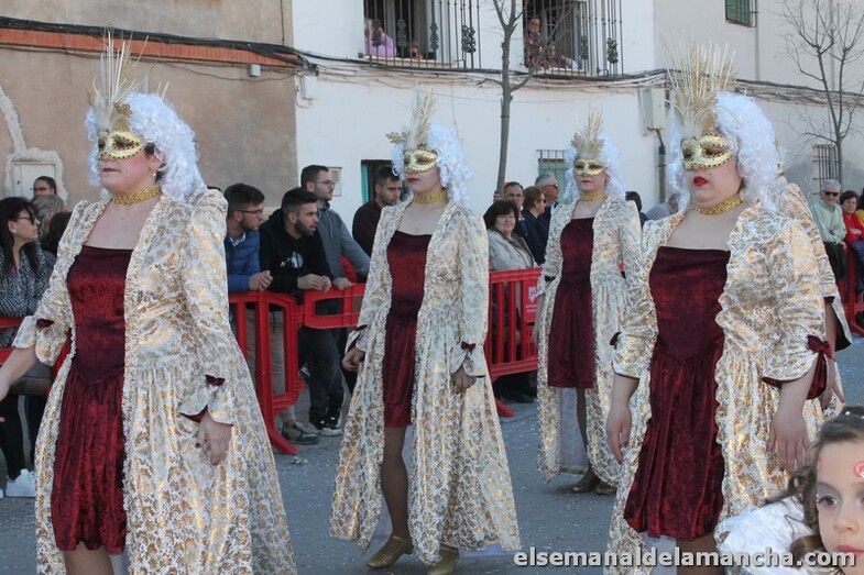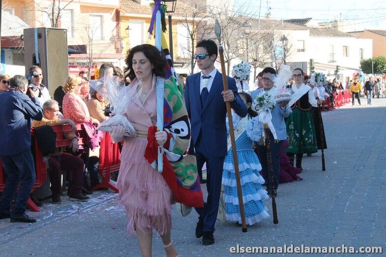 Tras el ofertorio y los actos de la bandera, ha dado comienzo el desfile de Carnaval, en el que se han dado cita 19 comparsas llegadas de diferentes puntos de la región como Madridejos, Villacañas. Urda, Mota del Cuervo, Las Mesas o La Puebla de Almoradiel. Máscaras, brujas, la selva, corsarios o rusos han desfilados por las calles de Villafranca en una tarde propicia para ello.