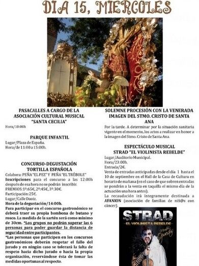 Recordar que las fiestas comenzarán el lunes, 13 de septiembre, con la tradicional ofrenda floral, procesión del Cristo y pregón, que este año corre a cargo del historiador local Félix Patiño Galán, figura que ha puesto en valor la concejala.