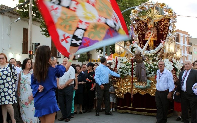 Villafranca de los Caballeros ha vivido por todo lo alto la festividad de su patrón, el Santo Cristo de Santa Ana, este viernes, 15 de septiembre. Una multitudinaria y emotiva procesión recorría las principales calles del municipio manchego, desde la iglesia parroquial, hasta la ermita, a partir de las 19:30 horas. Momentos antes en la puerta de la Iglesia se llevaba a cabo la subasta de cintas y cordones que permite a los devotos realizar la procesión junto a la carroza del Cristo, así como el reparto de números para portar el estandarte del patrón.