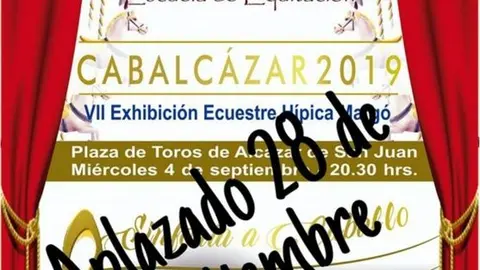 Información General El espectáculo de Cabalcázar de Hípica Margó, aplazado al día 28 de septiembre G.G.G. 01/sept/19 19:18