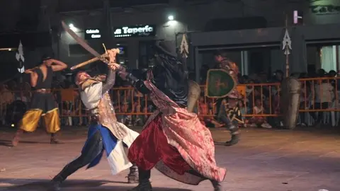 El espectáculo histórico de lucha de la Embajada Mora llena la Plaza de España de Alcázar luz y color