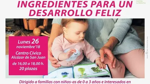 EN EL CENTRO CÍVICO DE ALCÁZAR, EL LUNES DÍA 26 DE NOVIEMBRE, DE 16 A 18 HORAS Taller de Atención Temprana “Ingredientes para un desarrollo feliz” para familias con bebés de 0 a 3 años El Semanal 09/nov/18 11:52 Taller de Atención Temprana “Ingredientes para un desarrollo feliz” para familias con bebés de 0 a 3 años