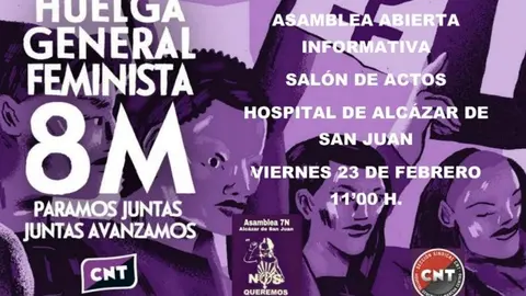 A LAS 11H EN EL SALÓN DE ACTOS DEL HOSPITAL MANCHA CENTRO La CNT convoca para este viernes, en el Hospital, una asamblea informativa sobre la huelga del 8M Gema González 22/feb/18 17:50