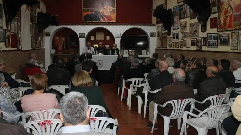 El periodista taurino Javier Hurtado diserta sobre la historia del mundo del toro, invitado por la peña de Aníbal Ruiz