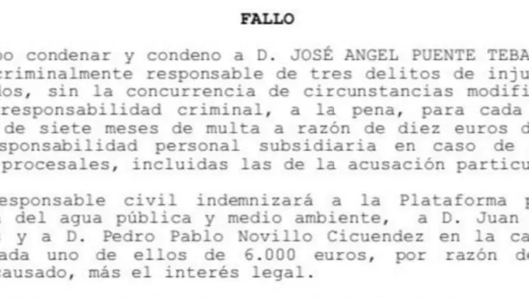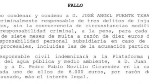 Puente, condenado por tres delitos de injuria, deberá indemnizar a la Plataforma del Agua, a Garrido y a Novillo