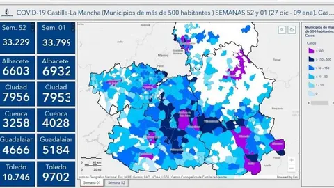 DATOS CORRESPONDIENTES AL PERÍODO COMPRENDIDO ENTRE EL 27 DE DICIEMBRE Y EL 9 DE ENERO Continúan subiendo los positivos Covid en Alcázar y comarca G.G.G. 13/ene/22 14:57