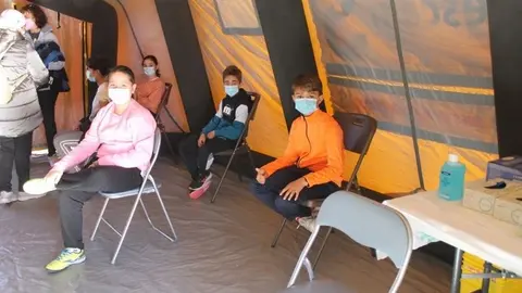 En la unidad móvil pediátrica instalada en el Jardín de Arena Comienza en Alcázar la vacunación infantil con los primeros niños del colegio Santa Clara G.G.G. 15/dic/21 14:14 Comienza en Alcázar la vacunación infantil con los primeros niños del colegio Santa Clara