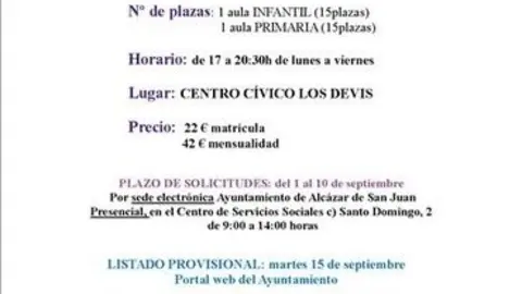 Información General Abierto el plazo de solicitud de matrícula para la “Ludoteca Regaliz” de Alcázar El Semanal 31/ago/21 20:09