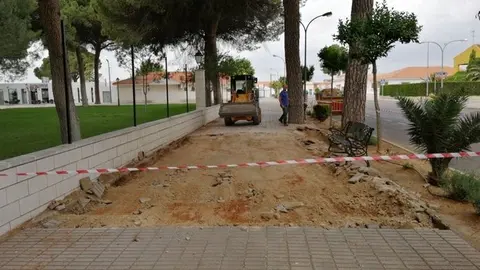 Nueva obra de rehabilitación del paseo del parque de Arenales por las raíces de un pino