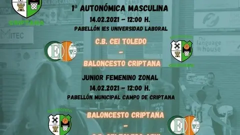 CRÓNICAS BALONCESTO CRIPTANA Nuevas victorias para el senior masculino de 1ª autonómica y de las junior femeninas El Semanal 15/mar/21 12:58 Nuevas victorias para el senior masculino de 1ª autonómica y de las junior femeninas