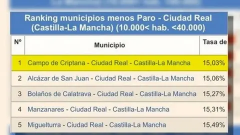 Los mejores datos desde el año 2007 Campo de Criptana, municipio con más de 10.000 habitantes con menor tasa de desempleo de la provincia El Semanal 01/jul/22 13:40 Campo de Criptana, municipio con más de 10.000 habitantes con menor tasa de desempleo de la provincia