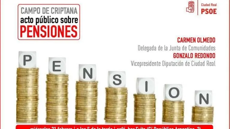 ESTA TARDE, A LAS 17 HORAS, EN EL BAR EVITA El PSOE celebra una asamblea abierta en Campo de Criptana para hablar de las pensiones El Semanal 21/feb/18 12:22 El PSOE celebra una asamblea abierta en Campo de Criptana para hablar de las pensiones