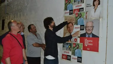 El PSOE de Cinco Casas comienza la campaña electoral con el candidato Carlos Jareño en la tradicional pegada de carteles