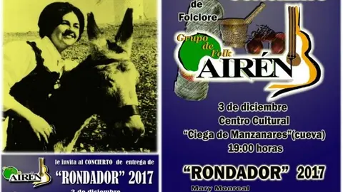 El próximo domingo, 3 de Diciembre, en el Centro Cultural “Ciega de Manzanares” El grupo folk AIRÉN de Manzanares, otorga el galardón “Rondador’2017” a Mary Monreal El Semanal 28/nov/17 21:02