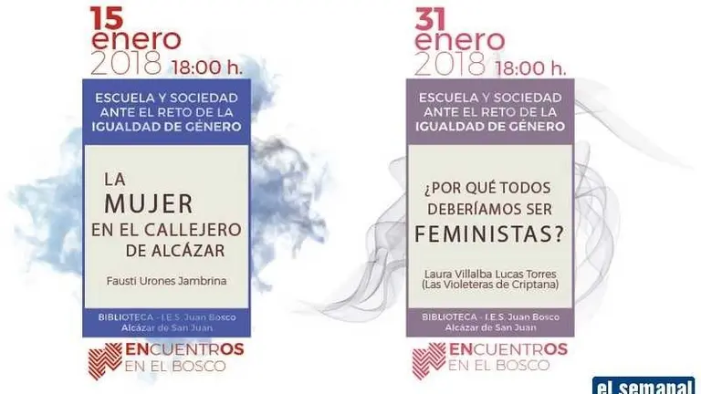 El primero, “La mujer en el callejero de Alcázar” El IES Juan Bosco organiza varios encuentros bajo la denominación “Escuela y sociedad ante el reto de la igualdad de género” El Semanal 16/ene/18 19:56 El IES Juan Bosco organiza varios encuentros bajo la denominación “Escuela y sociedad ante el reto de la igualdad de género”